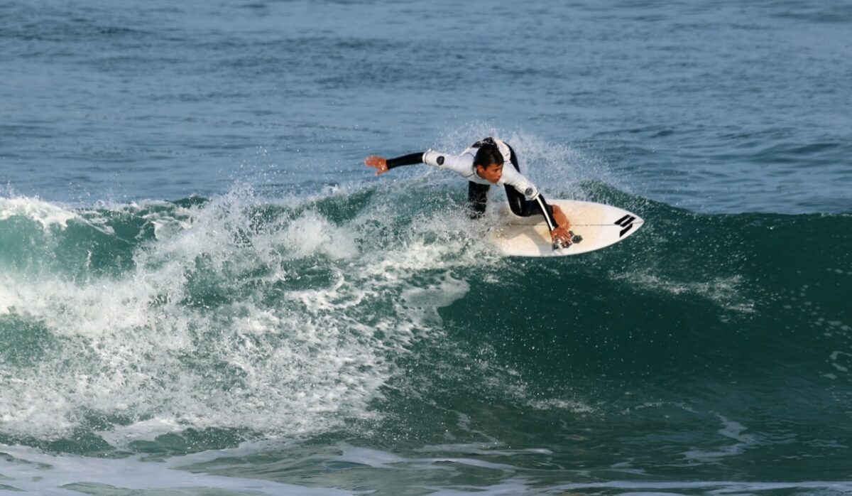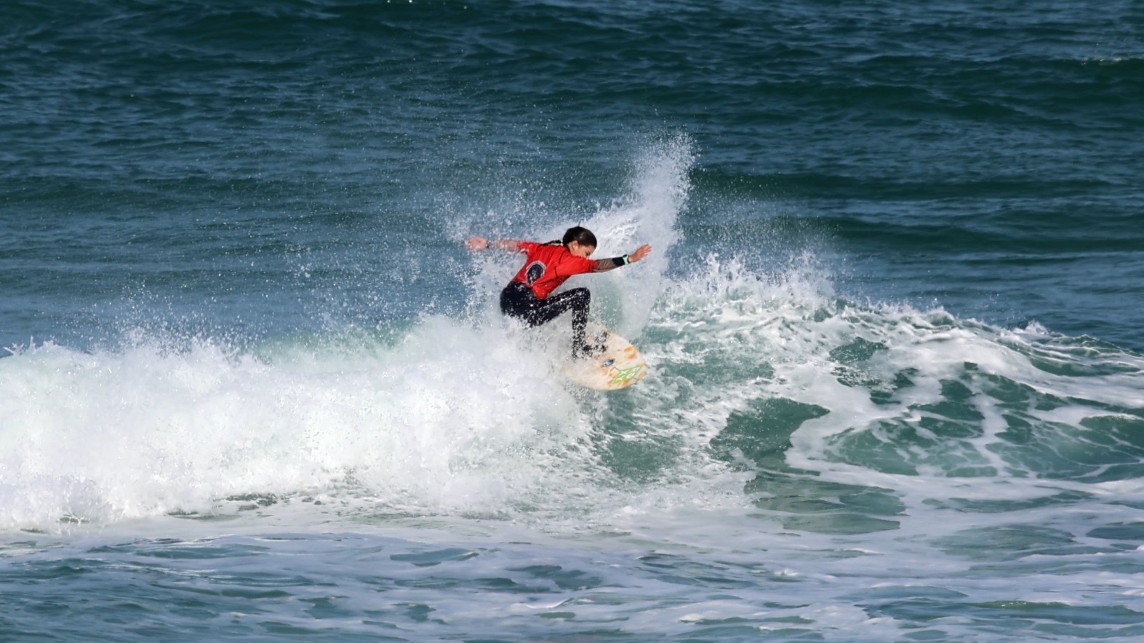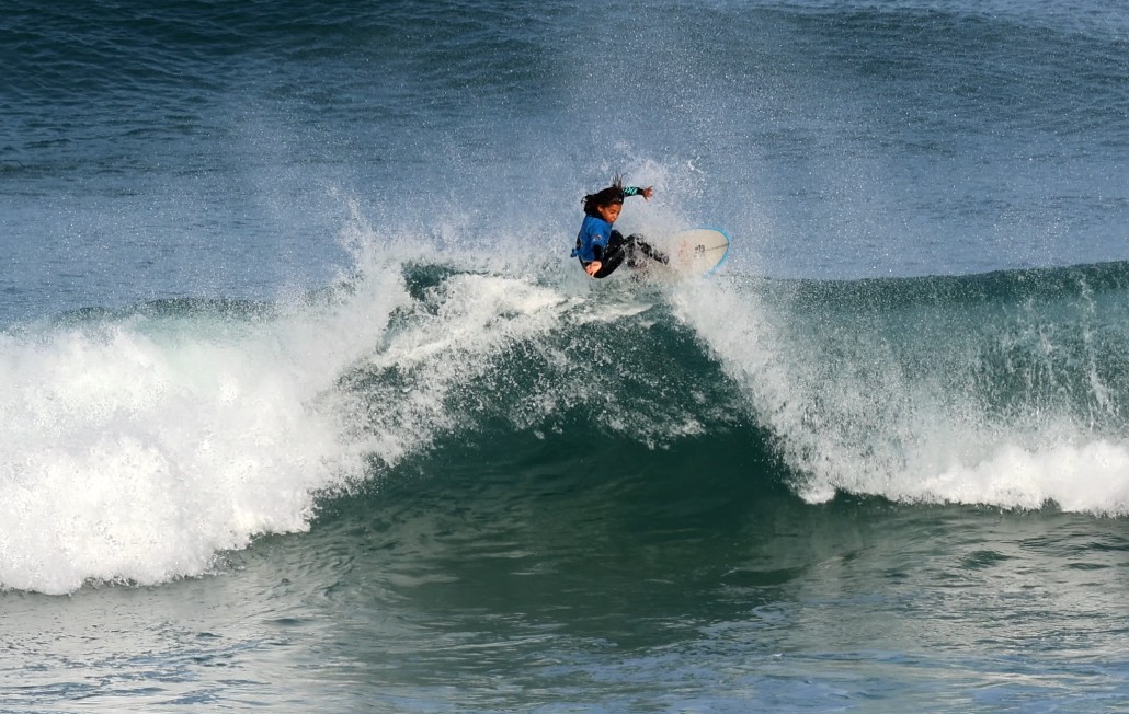 Chez les Garçons en U14 ce fut une finale passionnante pleine de suspense. Le jeune Gabriel DELVAL avait crée la surprise en prenant la tête de cette finale avec une superbe et très longue gauche du large jusqu’au bord notée 6,33. A 1 mn de la fin Jules TRAINAUD et Otto VENEGAS trouvent une vague qui leur permet de revenir au score. Finalement c’est Otto VENEGAS du Santocha qui passe 1er devant Gabriel DELVAL de Lou Surfou second, Jules TRAINAUD 3ème et Gaspar ROUX DOAN du HSC.