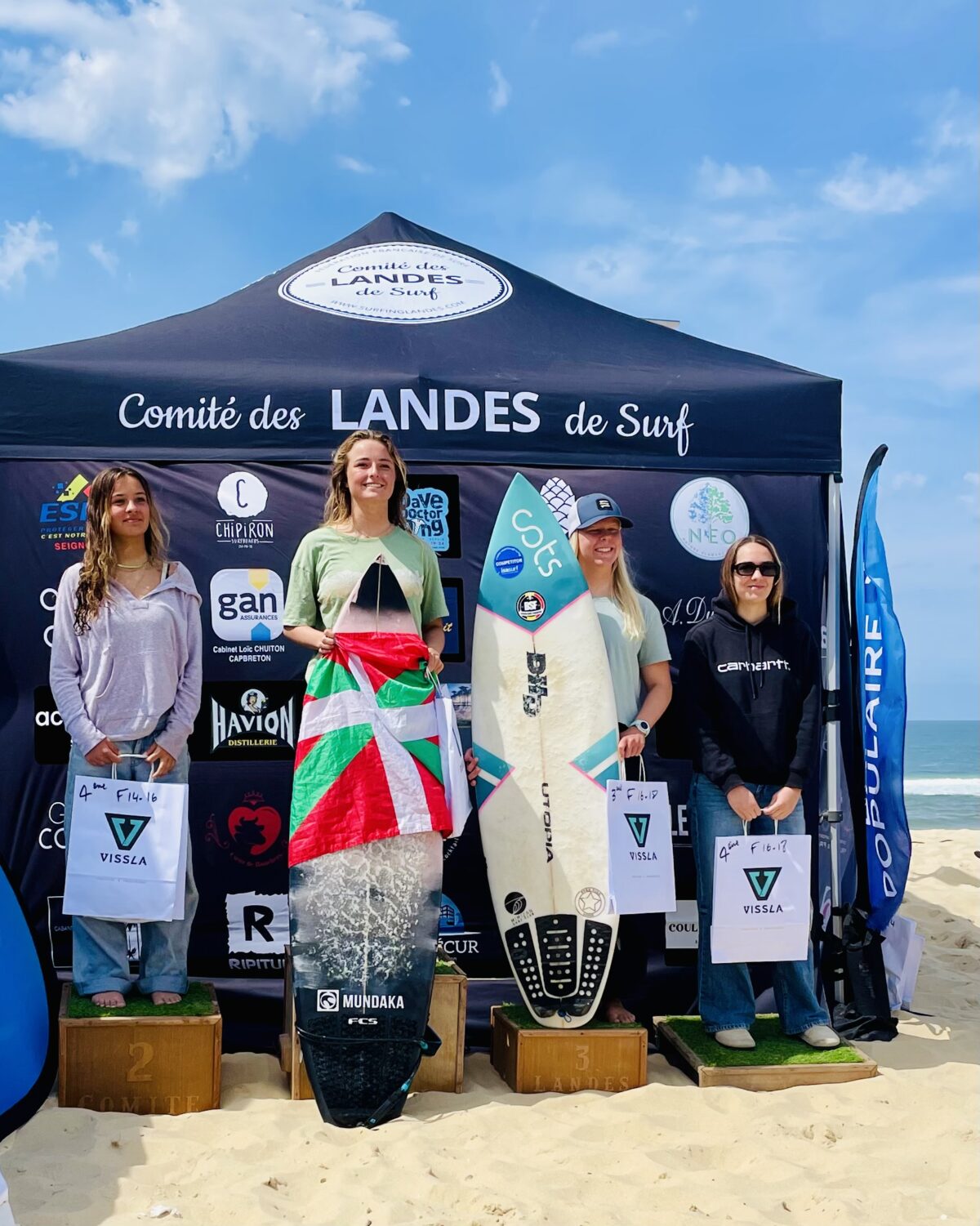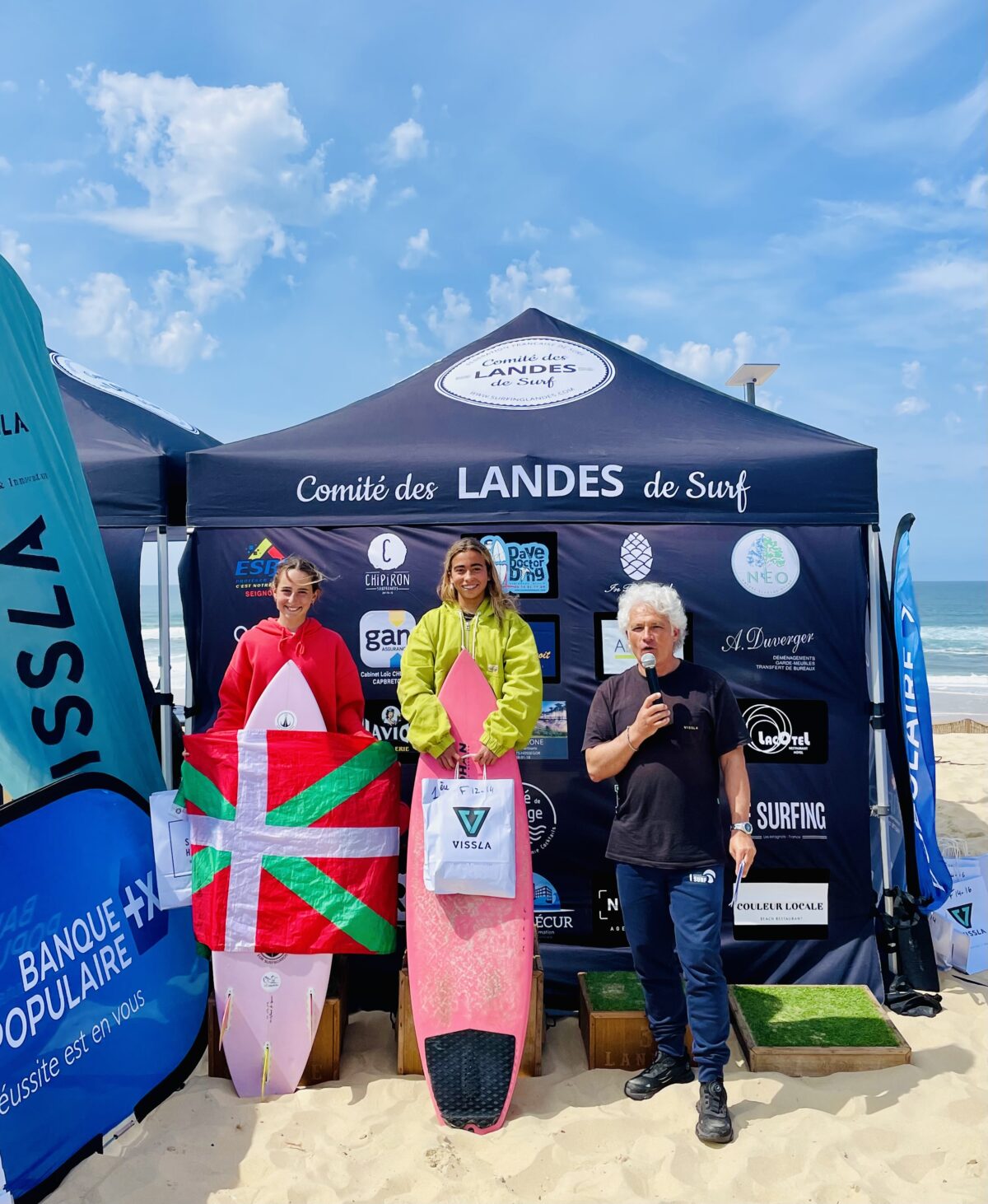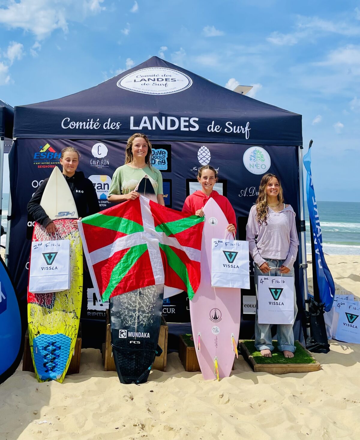 Chez les Filles en U14 en U16 comme en U18 les basquaises sont toujours très présentes. Cela fait vraiment plaisir de voir du très bon niveau chez ces surfeuses qui promettent pour la suite. Lola ECHEVERRIA très en forme gagne en U16 et U18 et chez les U14 c’est Lilirose FILA BAILLY qui s’impose. A noter toutefois les perfs des Landaises Amélie STREET et Flo DAANS. Les podiums ci dessous.