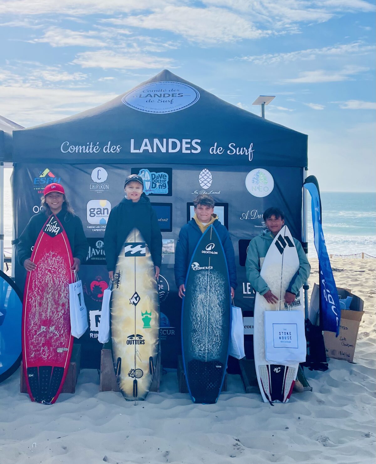 Grâce aux prévisions précises de son partenaire YADUSURF le Comité des Landes de SURF a décidé de lancer ce samedi malgré une houle assez solide et un coefficient de marée de 105. C’était un pari risqué mais une fois de plus ce fut un pari gagnant. Le spot de la plage sud de Mimizan a très bien fonctionné toute la journée offrant à tous les jeunes surfeurs venus en nombre de partout l’occasion de performer dans des conditions très convenables.